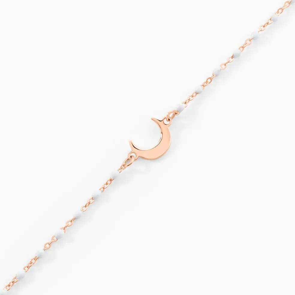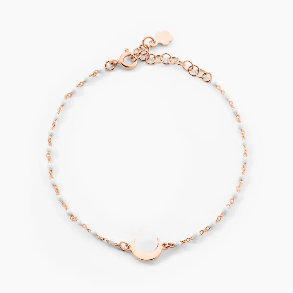 Bracelet Court Argent Rose 925/1000 Lune Boules émail Blanc Maille Boules 13+3cm