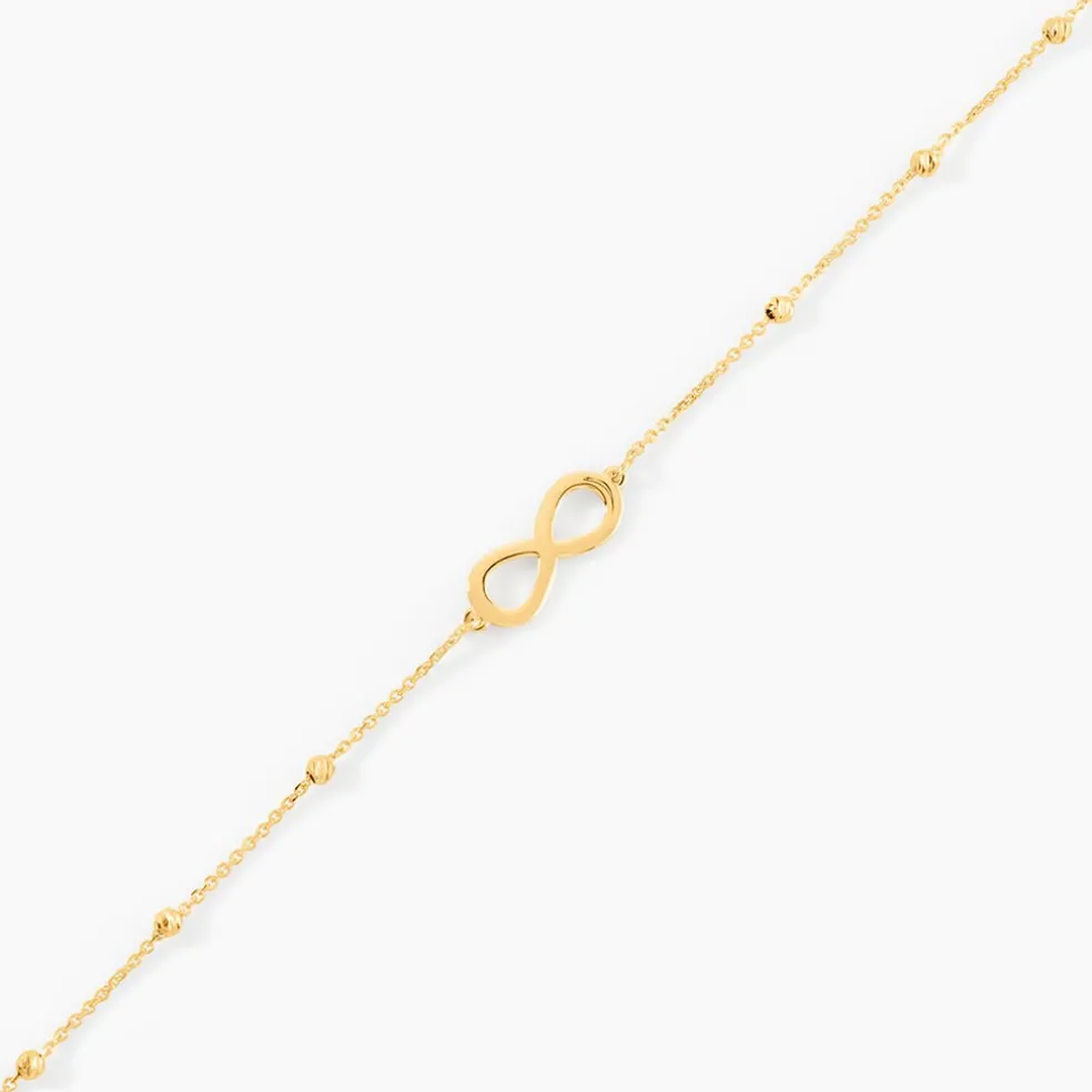 Bracelet Or Jaune 375/1000 Chaine Boules Et Infini Maille Jaseron 16+2cm