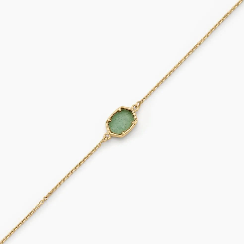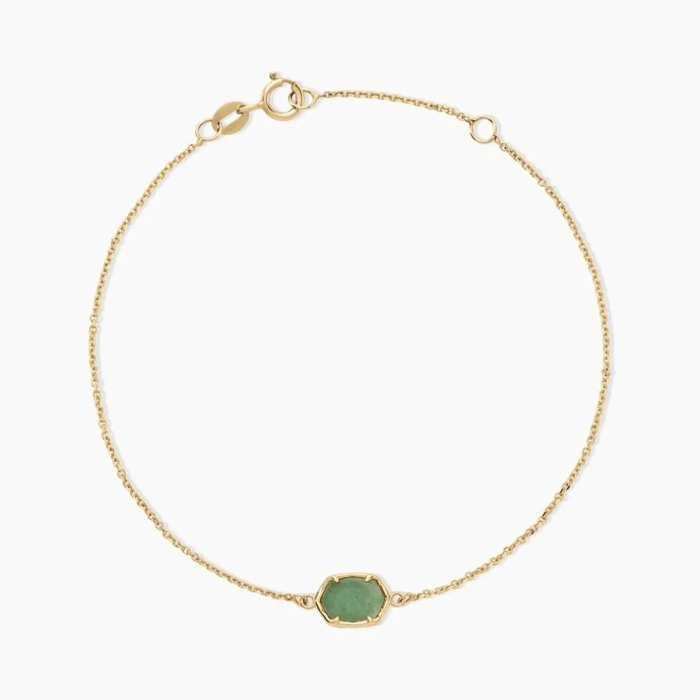 Bracelet Or Jaune 375/1000 Aventurine Hexagonale Maille Jaseron 16+2cm
