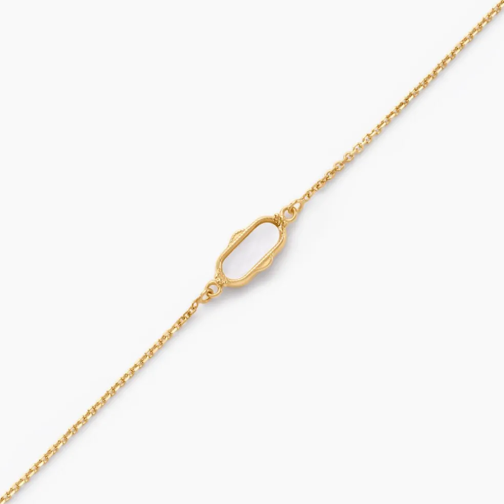 Bracelet Or Jaune 375/1000 Ovale Nacre Blanche Effet Perle Maille Jaseron 16+2cm