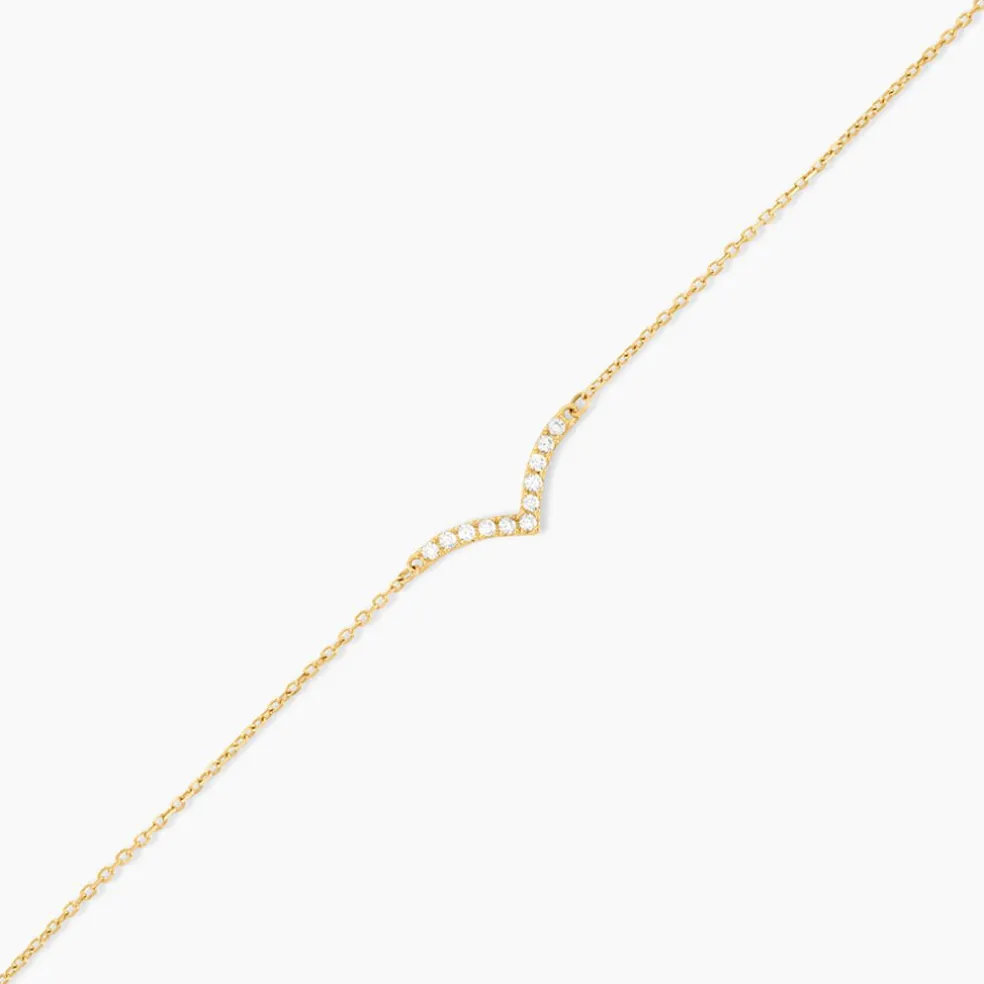Bracelet Or Jaune 375/1000 Aile De Mouette Pavage Oxyde De Zirconium Maille Forcat 16+2Cm