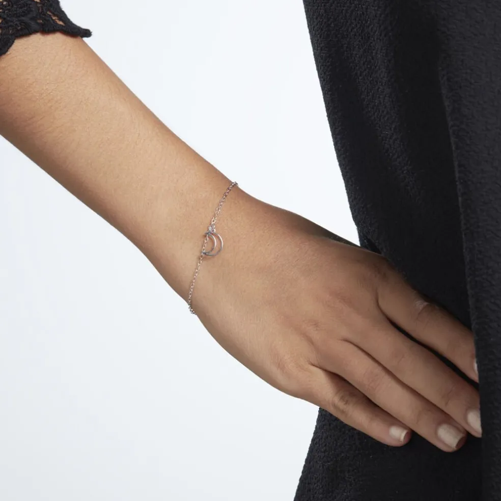 Bracelet Argent Blanc 925/1000 Pampille Lune Maille Forcat 18cm