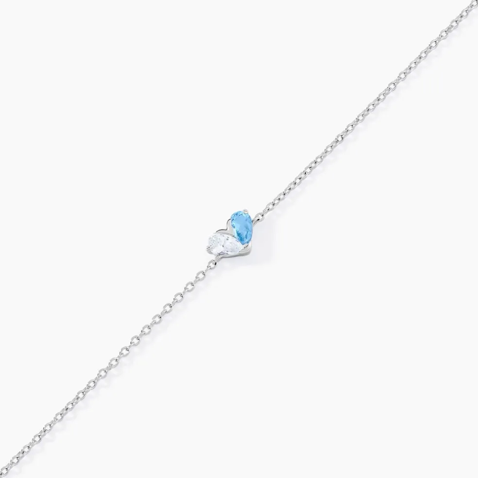 Bracelet Argent Blanc 925/1000 C艙ur Oxydes De Zirconium Bleu Et Blanc Maille Jaseron 16+3cm