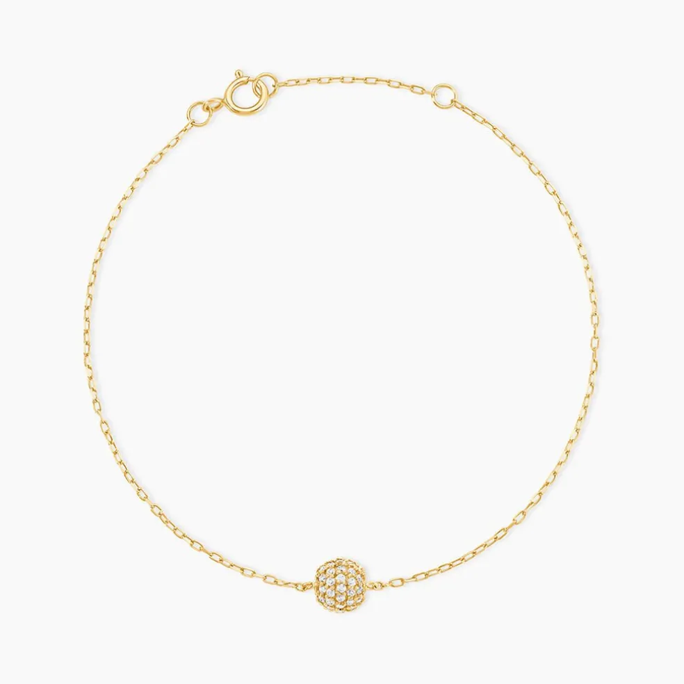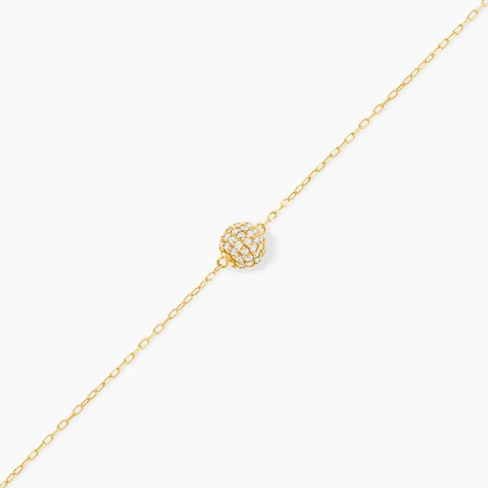 Bracelet Or Jaune 375/1000 Boule Pavage Oxyde De Zirconium Maille Forcat 16+2Cm