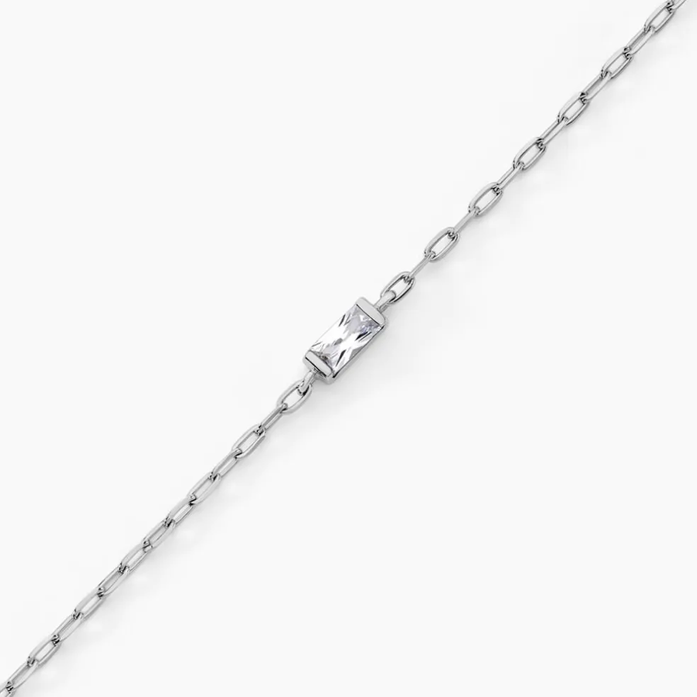 Bracelet Argent Blanc 925/1000 Oxyde De Zirconium Taille Baguette Maille Cheval Largeur 1.7mm 16+3cm