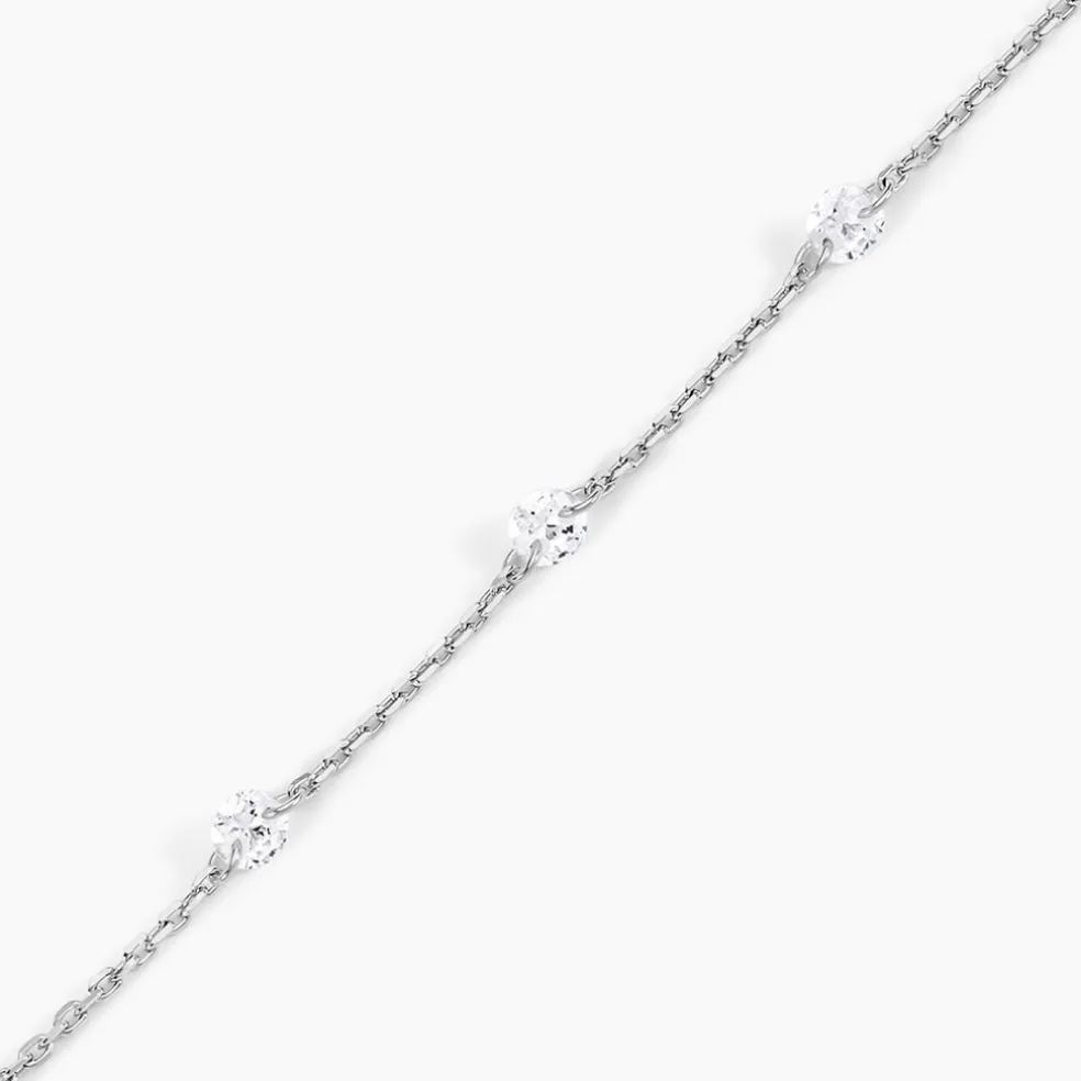 Bracelet Argent Blanc 925/1000 Oxydes De Zirconium Percés Maille Forçat 16+3cm
