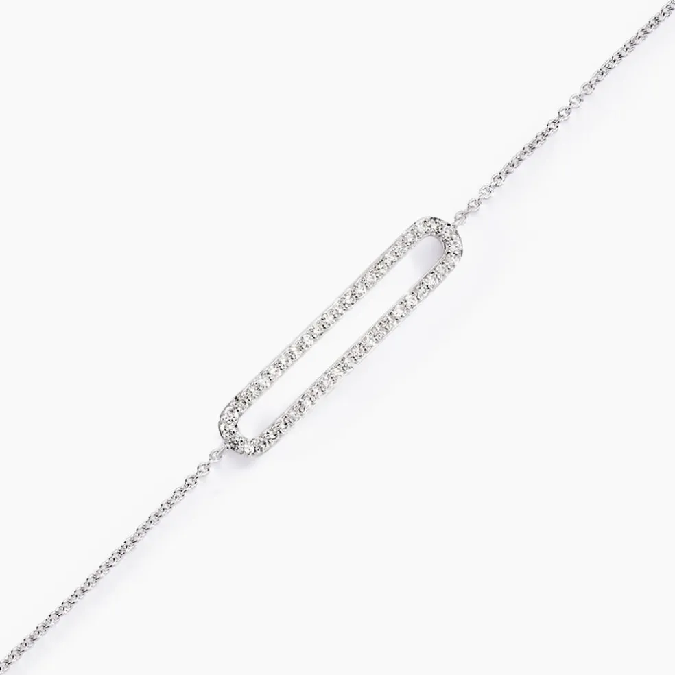Bracelet Or Blanc 375/1000 Valentine Forme Allongée Diamants 18.5cm