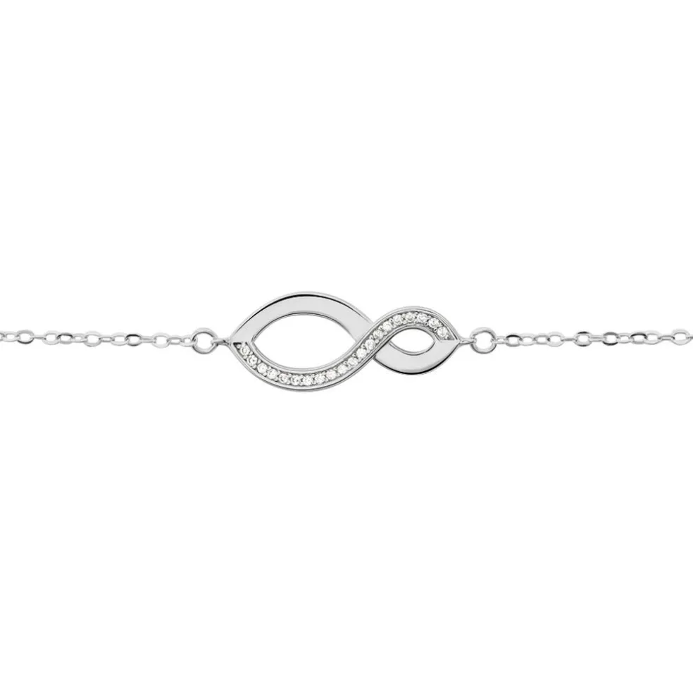 Bracelet Argent 925/1000 odile Motif Infini Oxydes De Zirconium Chaine Maille Forcat 18cm