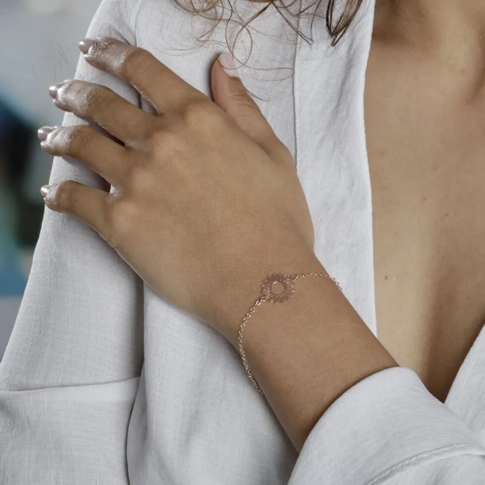 Bracelet Argent Rose 925/1000 Soleil Ajoure Maille Forcat 18cm
