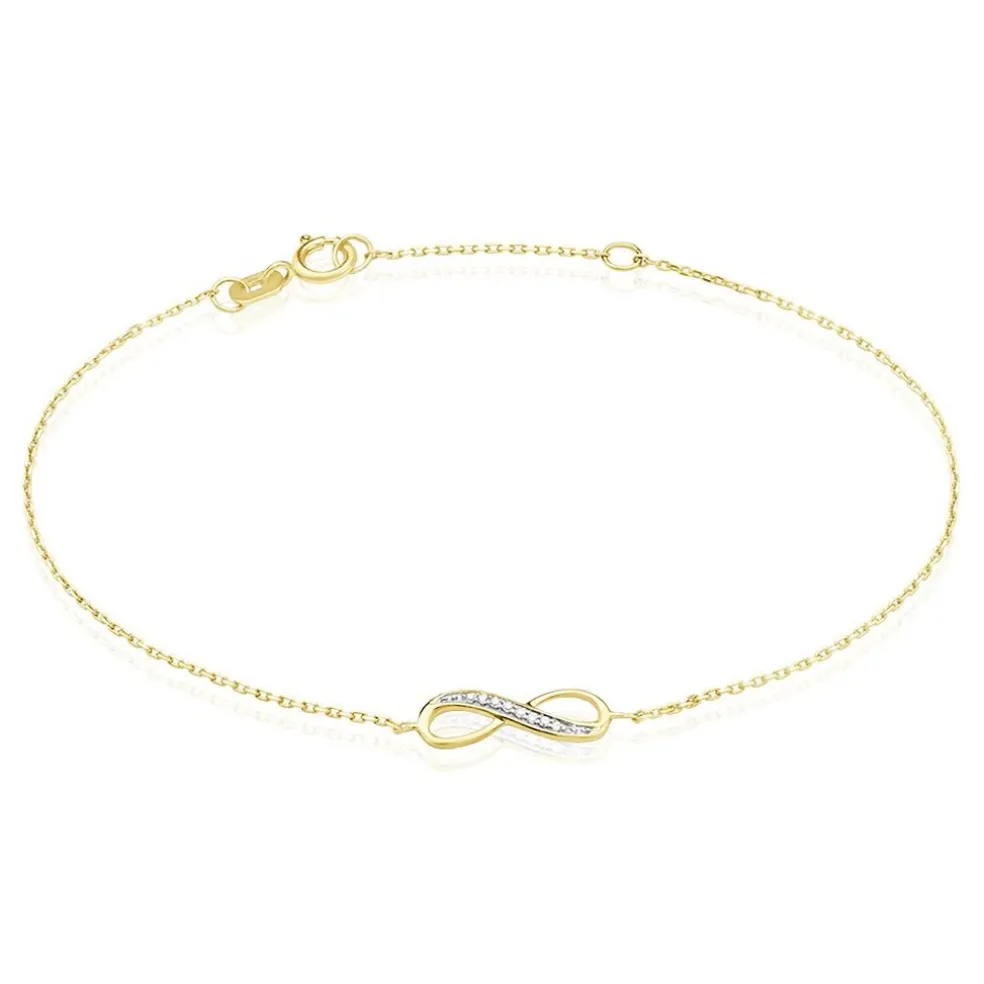 Bracelet Or Jaune 375/1000 Infini Semi Pavage Diamants Maille Forcat 16+2cm