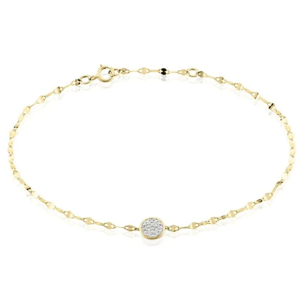 Bracelet Or Jaune 375/1000 Rond Diamants Maille Lumina 16+2cm