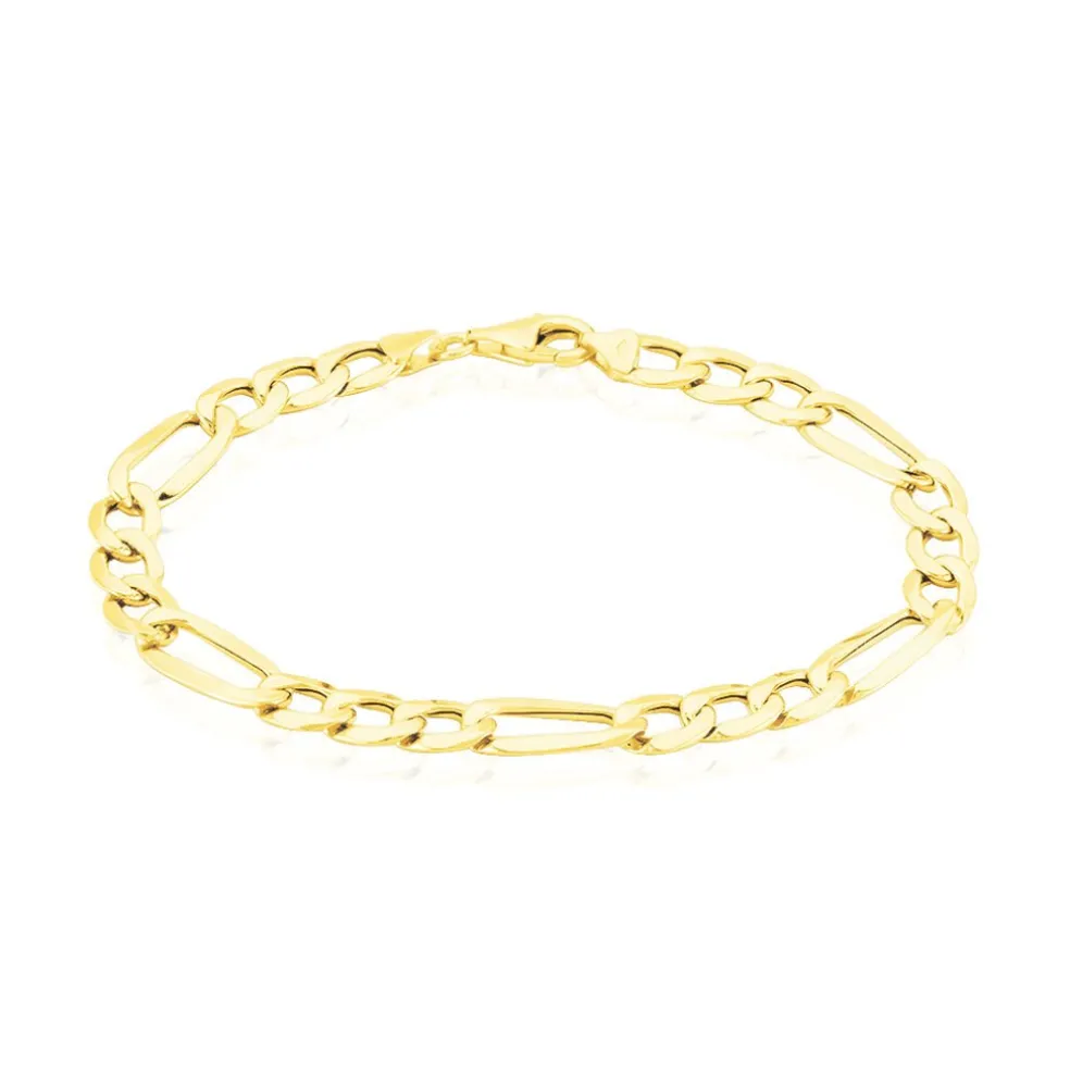 Bracelet Or Jaune 375/1000 Maille Alternée 1/3 Largeur 7.3mm 21cm