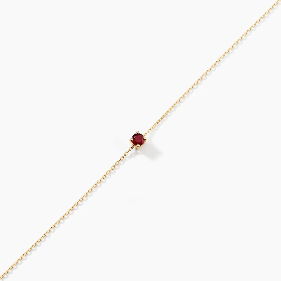 Bracelet Solitaire Or Jaune375/1000 Rubis Serti Griffes 0.12ct Maille Forçat 18cm