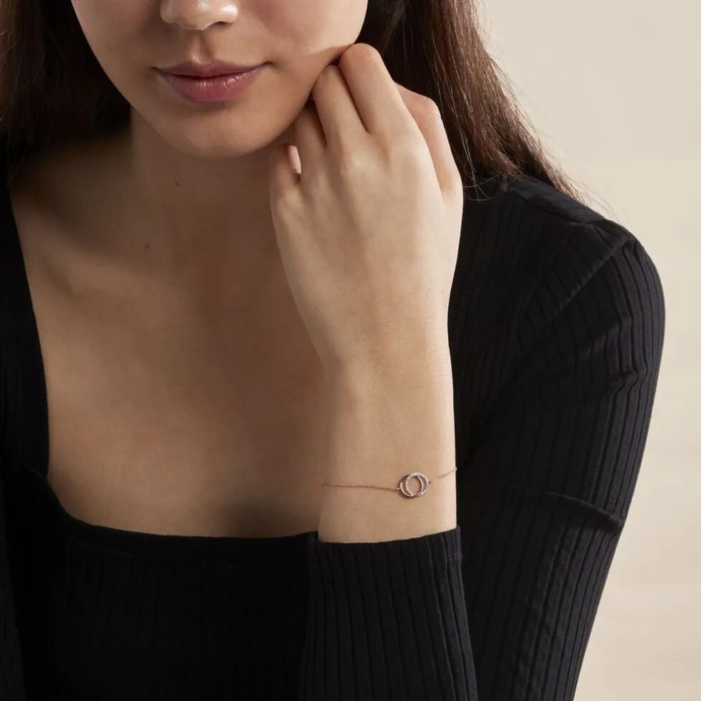 Bracelet Or Rose 375/1000 Forme Cercles Entrelaces Diamants 16+2cm