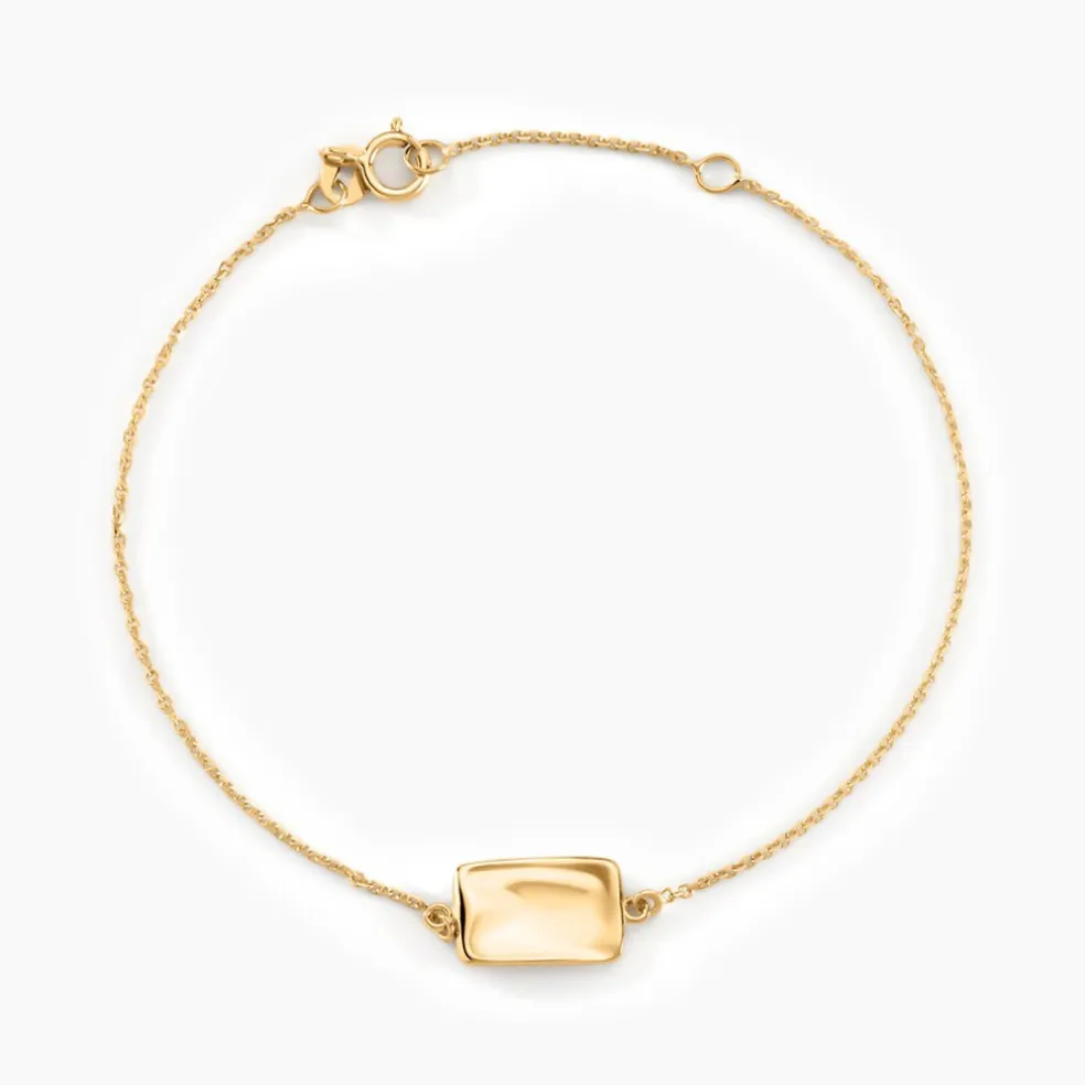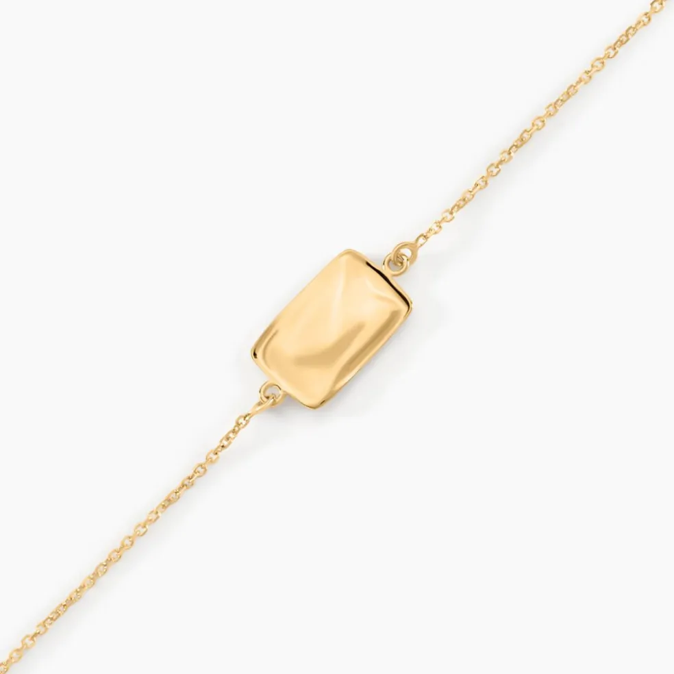 Bracelet Or Jaune 375/1000 Plaque Rectangle Martelee 12mm X 8mm Maille Jaseron 16+2cm