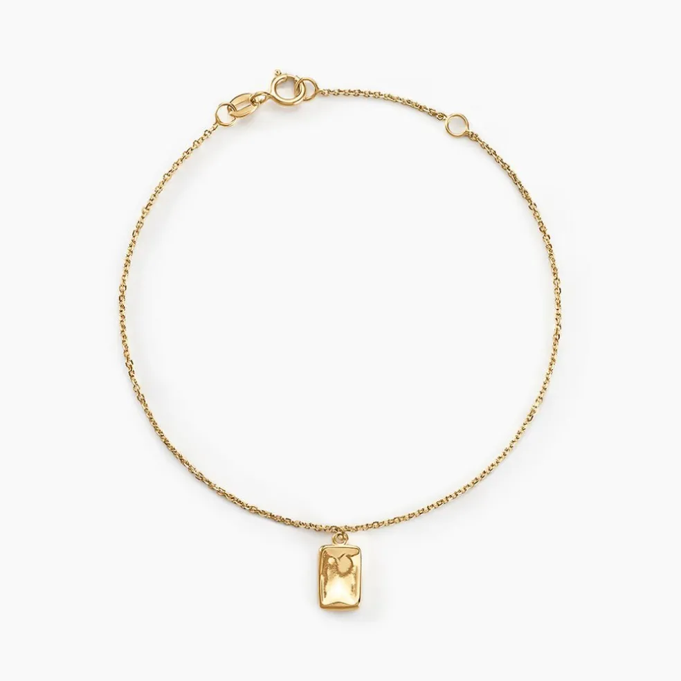 Bracelet Or Jaune 375/1000 Plaque Rectangle Martelee 8.5mm X 5mm Maille Jaseron Alternee Boules 16+2cm