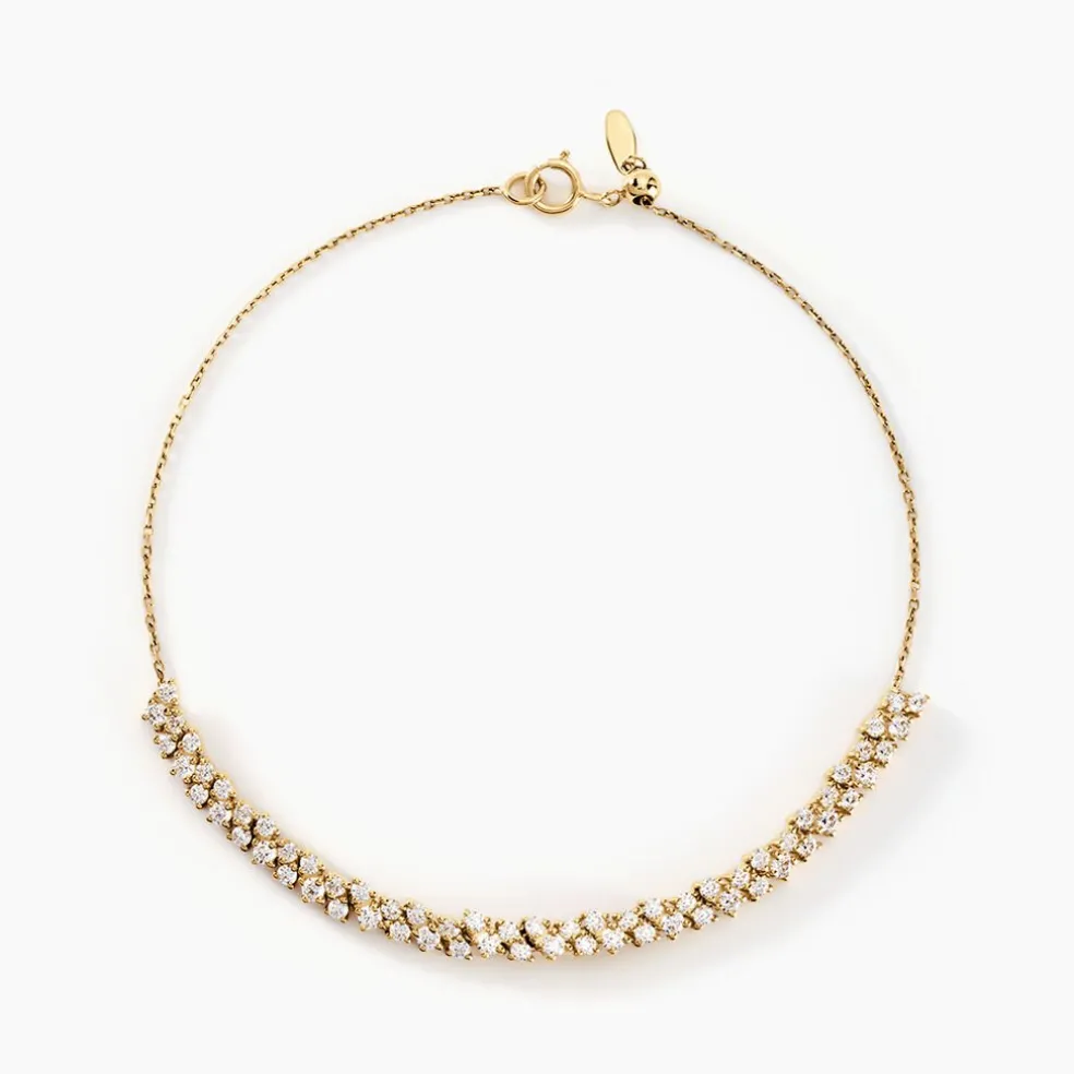 Bracelet Riviere Or Jaune 375/1000 Oxyde De Zirconium Serti Griffes Maille Forcat 18cm