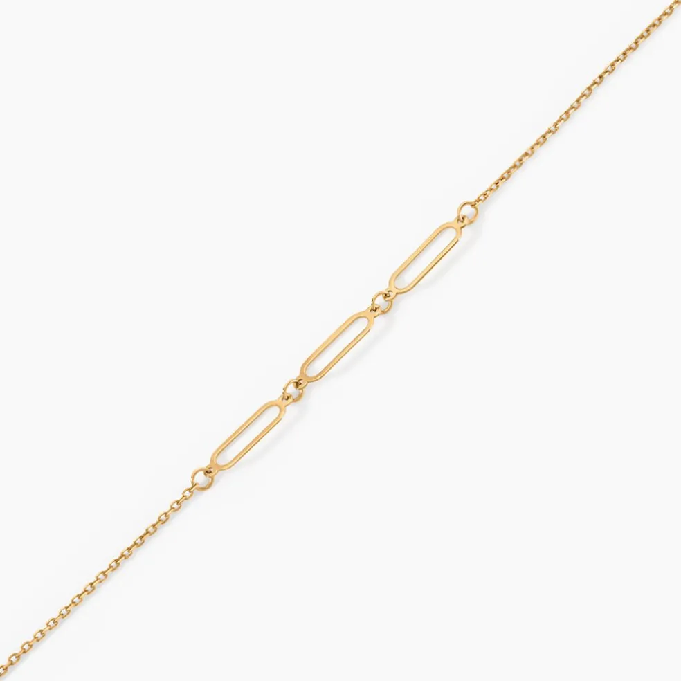 Bracelet Or Jaune 375/1000 Trilogie Maillons Ovales Maille Forcat 16+2Cm
