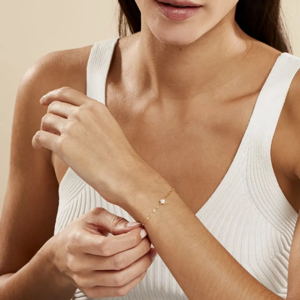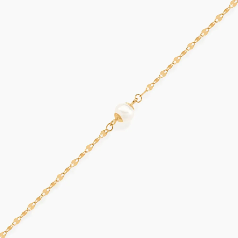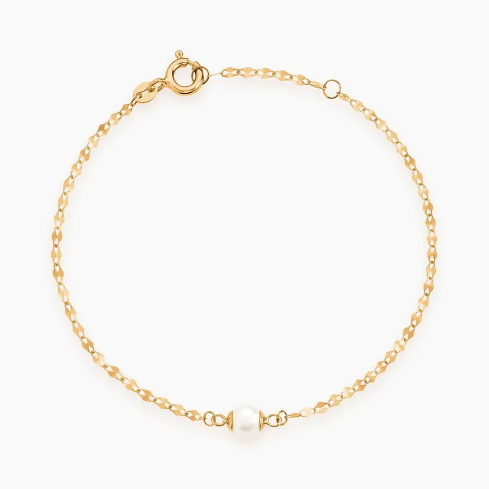 Bracelet Or Jaune 375/1000 Chaine Diamantée Perle De Culture 4.5/5mm 18cm