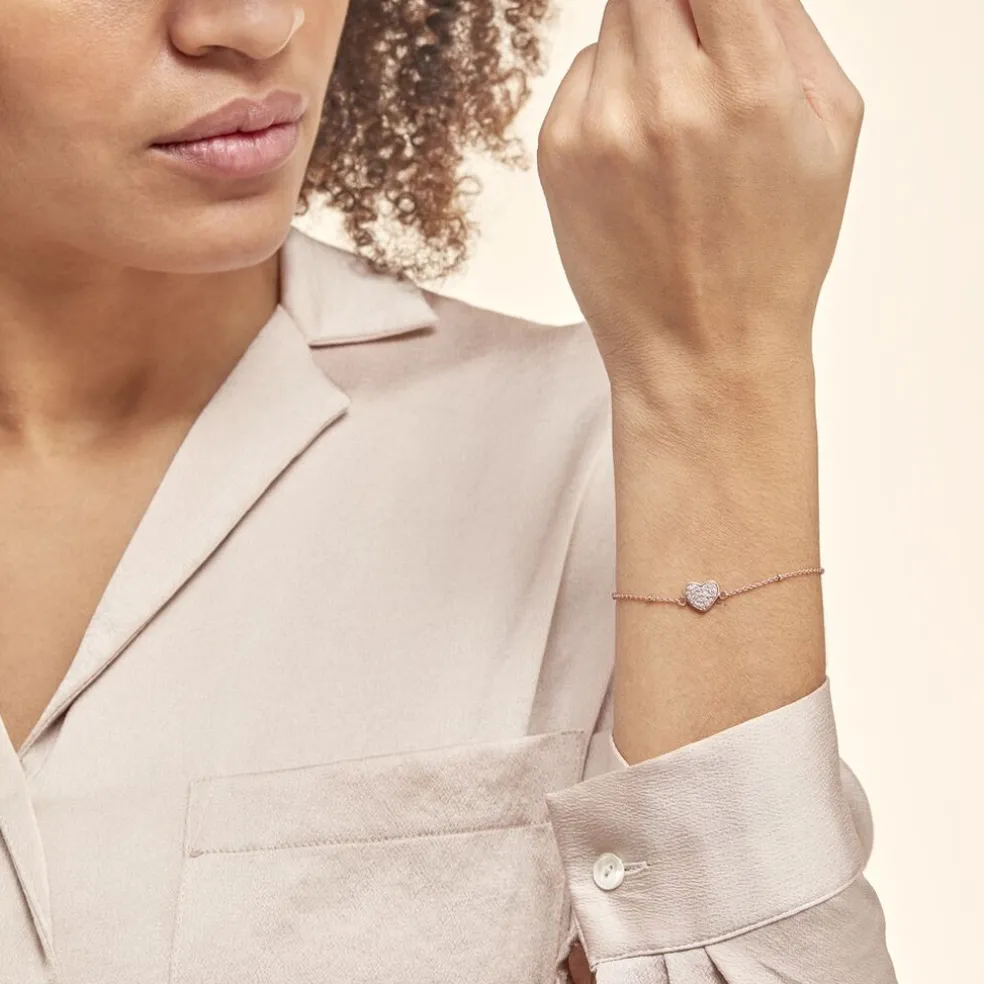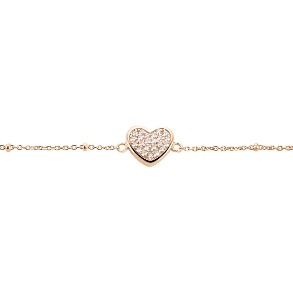 Bracelet Argent Rose 925/1000 C艙ur Pave Oxydes De Zriconium Maille Forcat 19cm