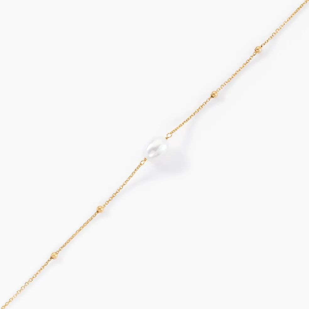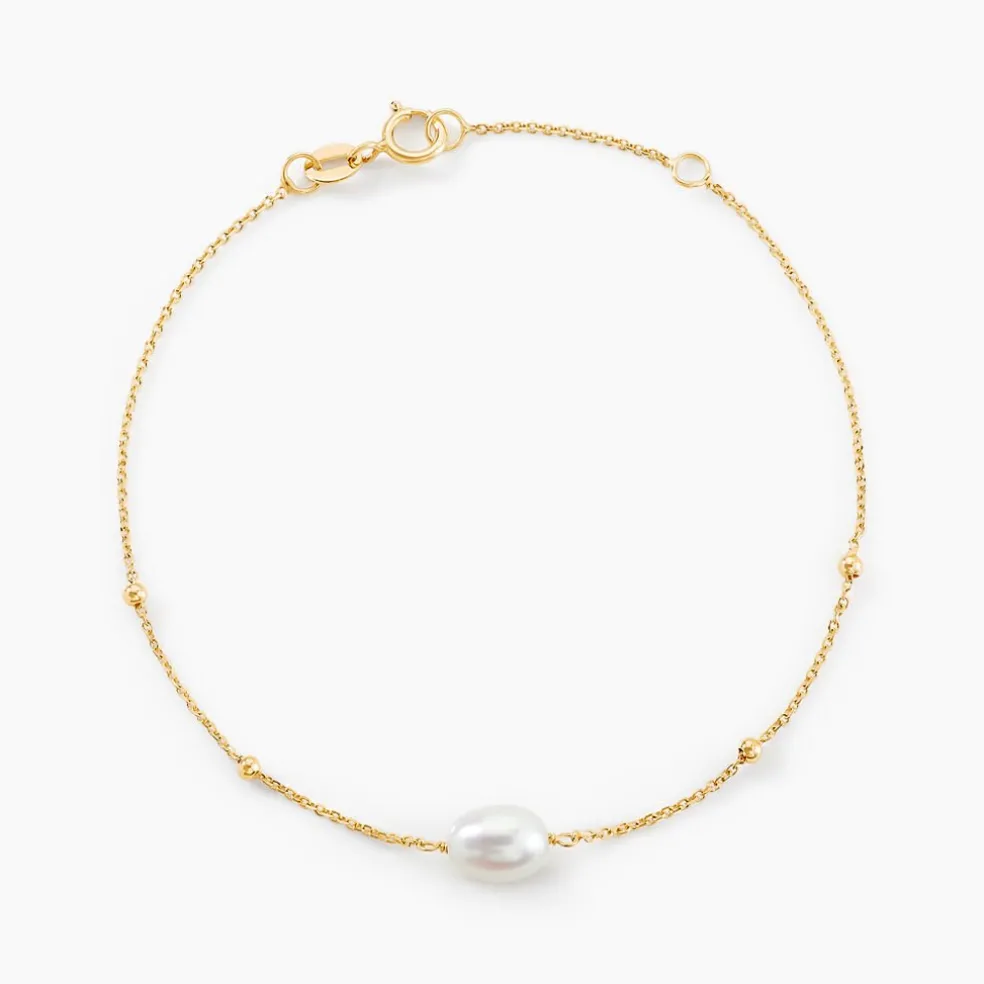 Bracelet Or Jaune 375/1000 1 Perle De Culture Ovale 6×4.5mm Maille Forcat Boules 16+2cm