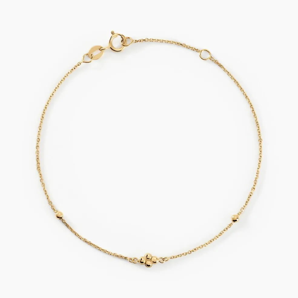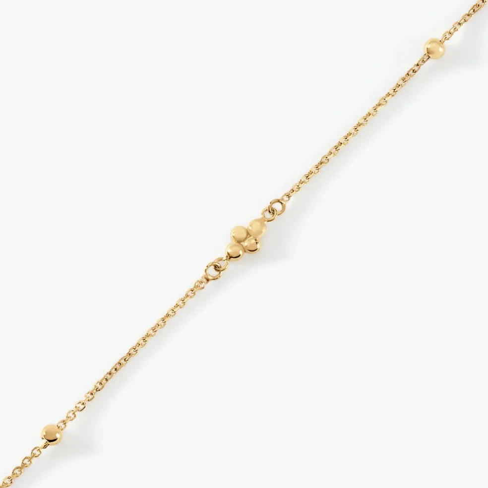 Bracelet Or Jaune 375/1000 Motif Grappe Centrale 4 Boules Chaine Alternance 2 Boules Maille Jaseron 40+2cm
