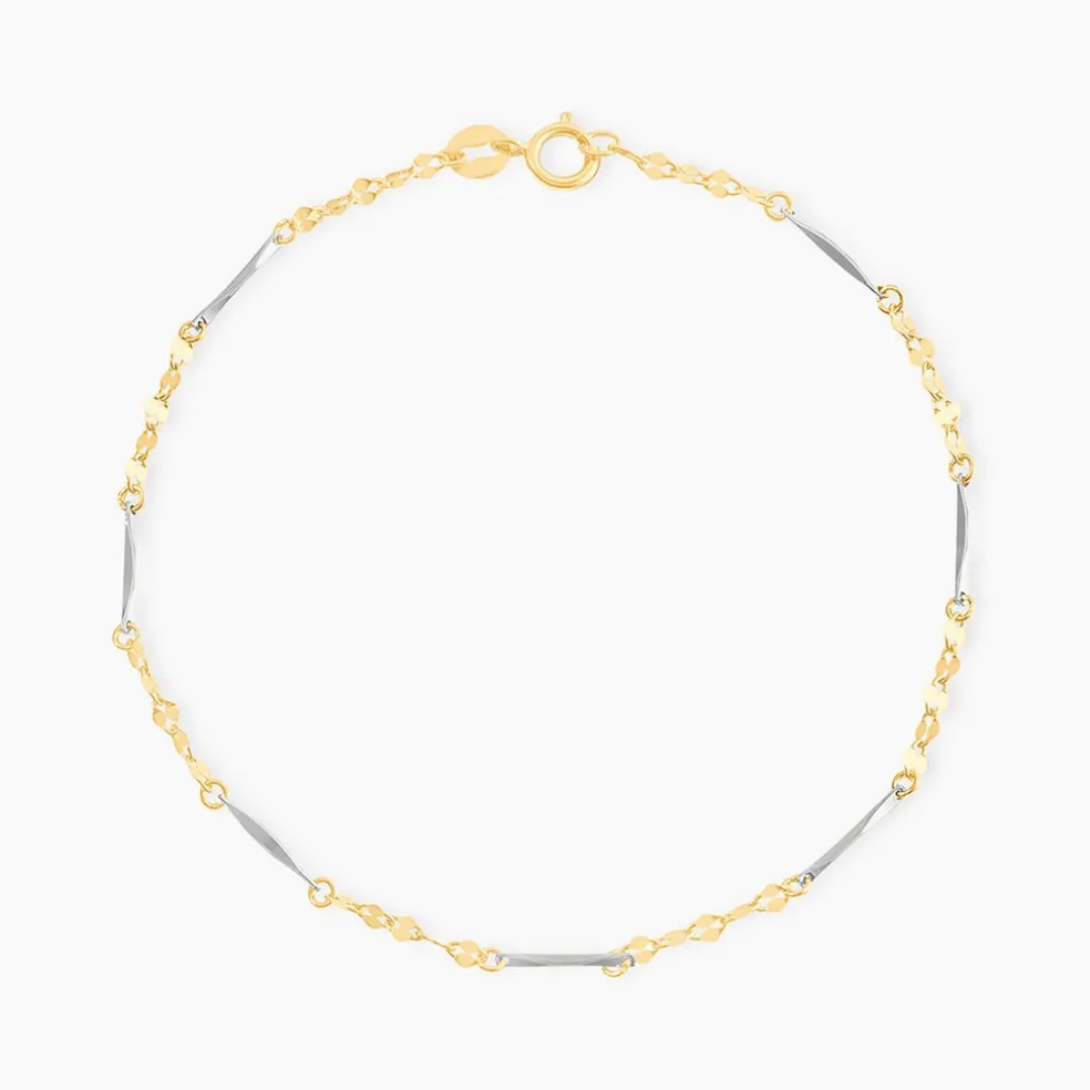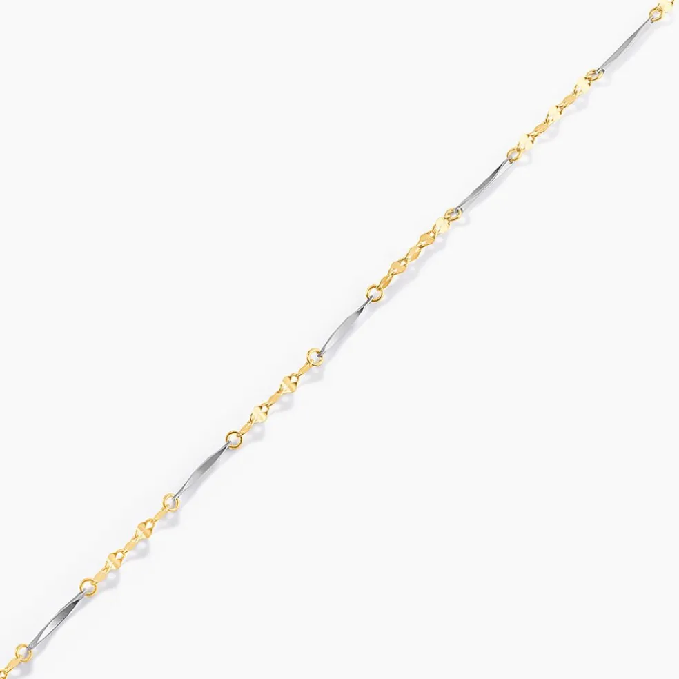 Bracelet Or Bicolore 375/1000 Maille Fantaisie 18cm