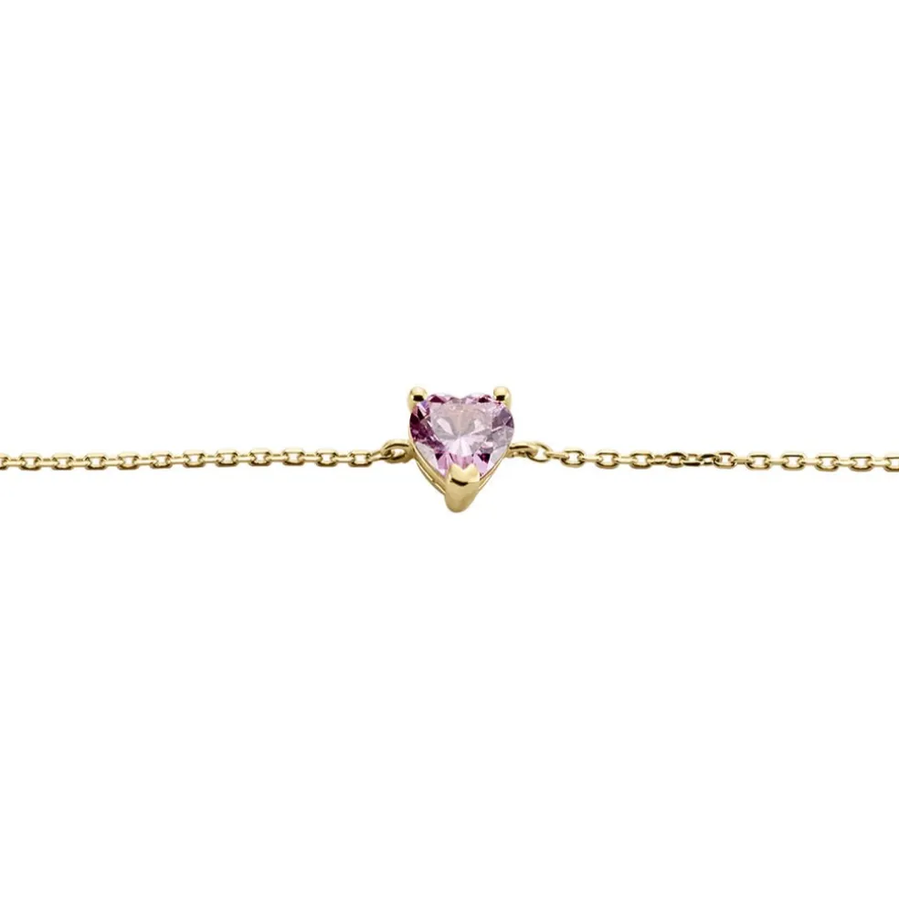 Bracelet Plaque Or Jaune C艙ur Serti Griffes Oxyde De Zirconium Rose Maille Forcat 16+3cm