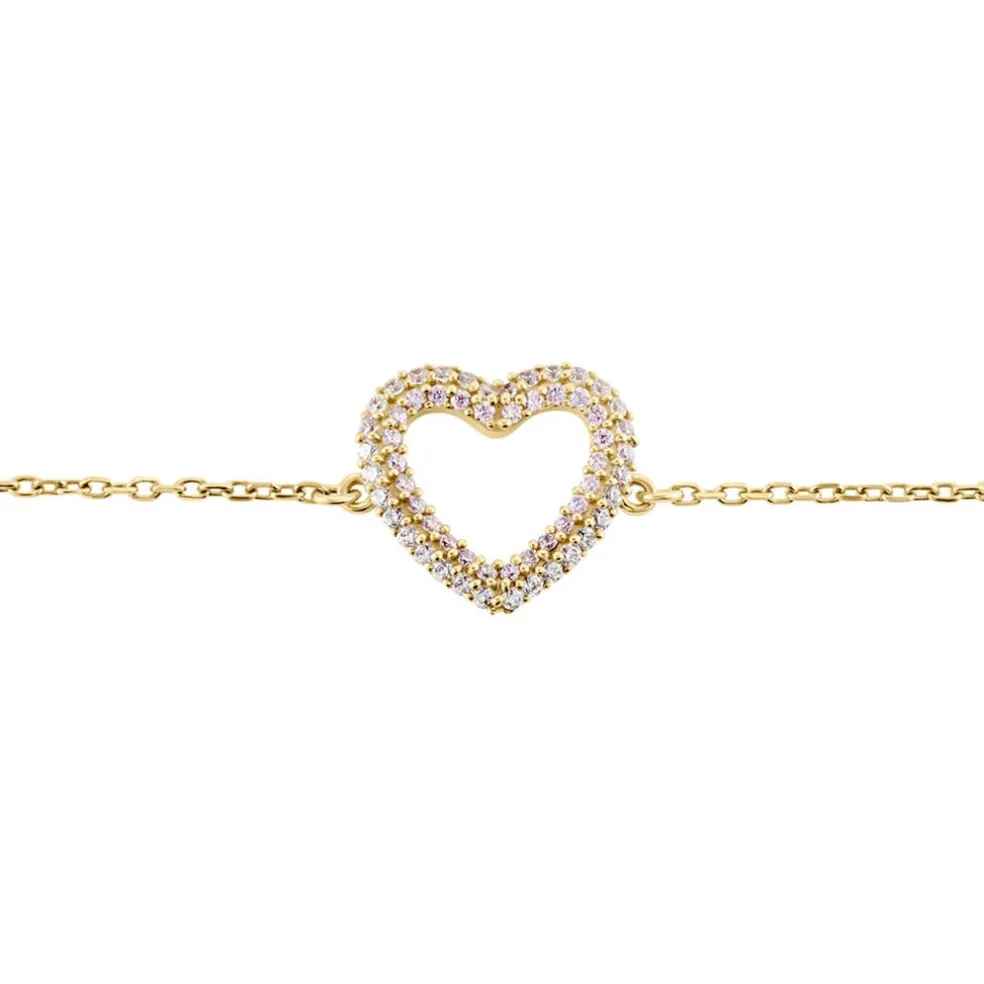 Bracelet Plaqué Or Jaune C艙ur Pavage Oxydes De Zirconium Rose Et Blanc Maille Forcat 19cm