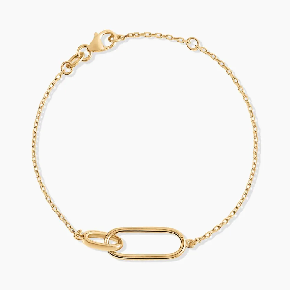 Bracelet Plaqué Or Jaune Double Maillons Entrelaces 18cm