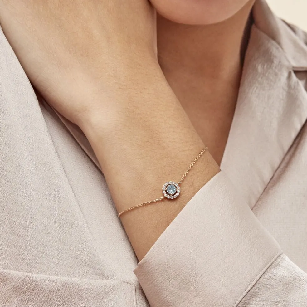 Bracelet Plaqué Or Jaune Entourage Pierre Artificielle Bleue Pavage Oxydes De Zirconium Blancs Maille Forcat 16+2cm