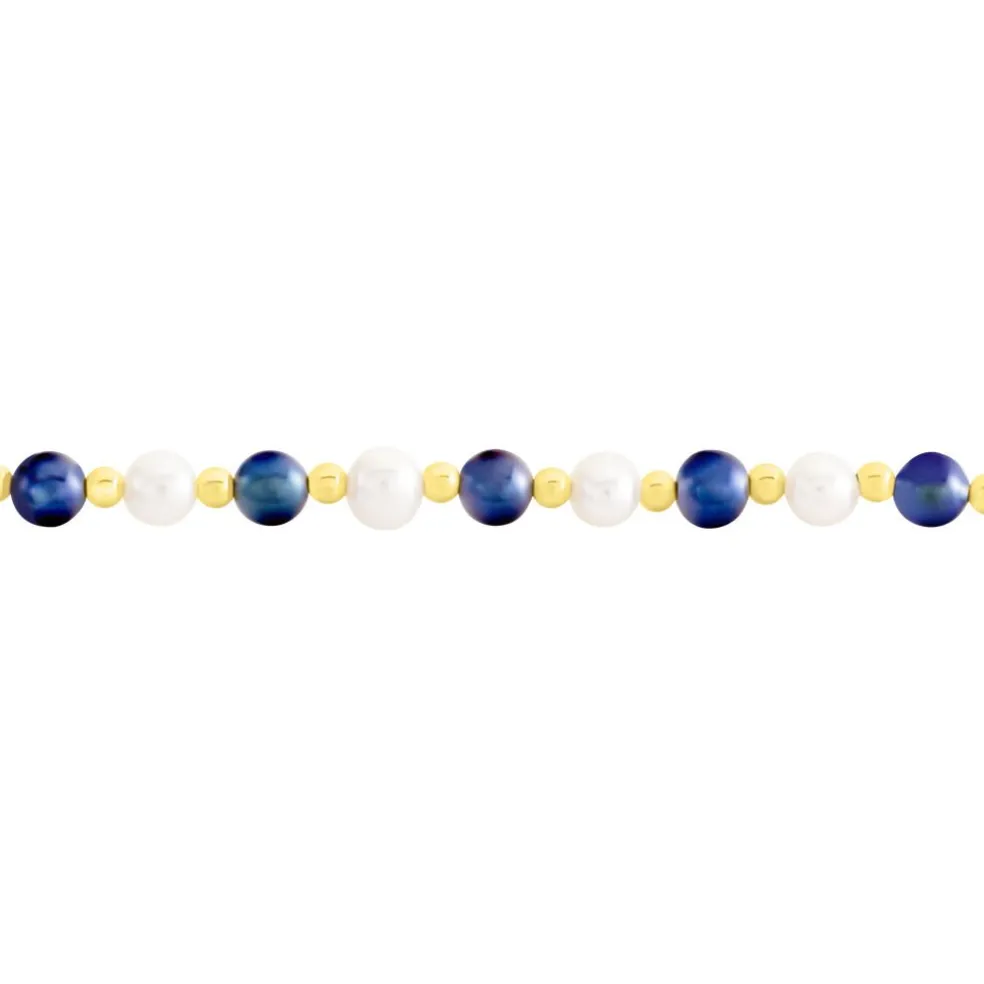 Bracelet Or Jaune 375/1000 Perles De Culture 4.5/5mm Semi-baroques + Boules Or 20cm
