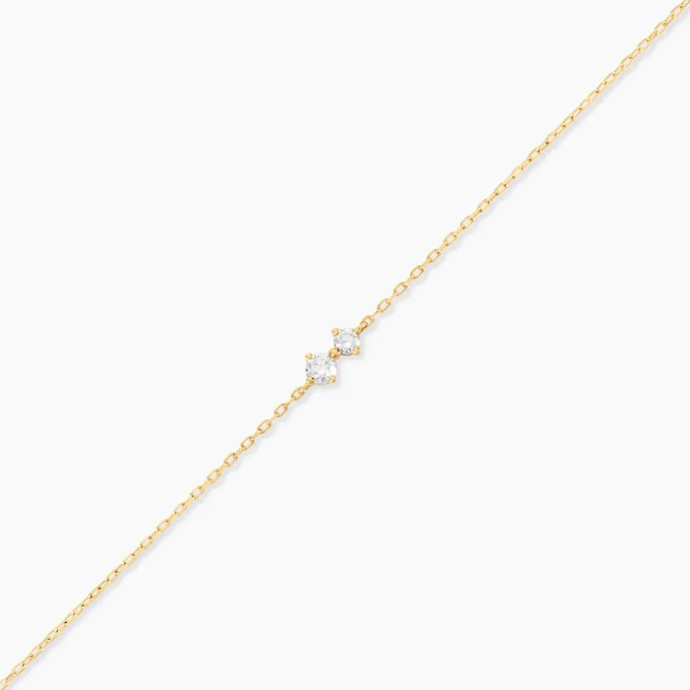 Bracelet Or Jaune 375/1000 Toi Et Moi Diamant Synthetique Serti Griffes Maille Forcat 16+2Cm