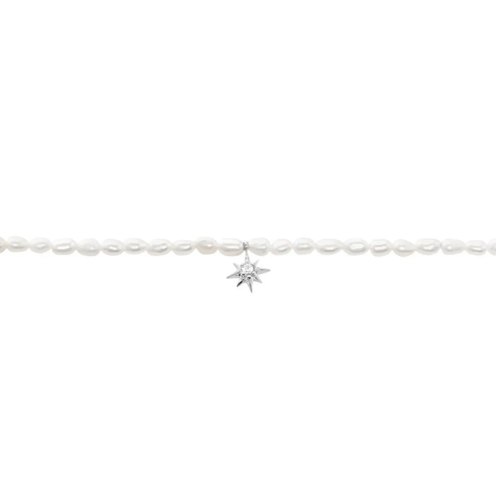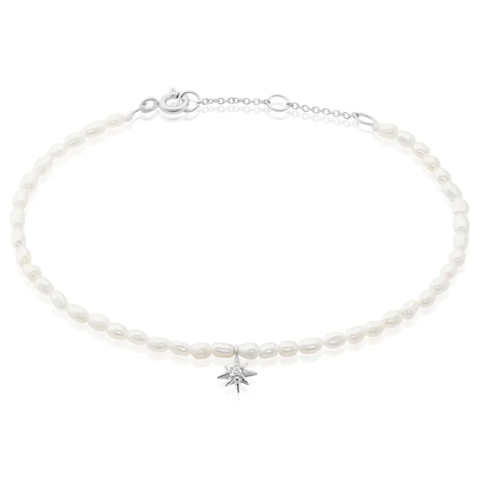 Bracelet Argent 925/1000 Pampille étoile Oxyde De Zirconium Perles De Culture 2.5mm 16+3cm
