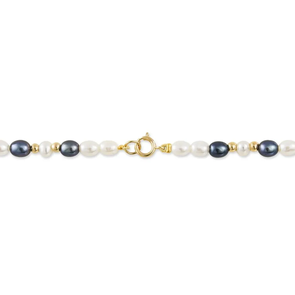 Bracelet Or Jaune 375/1000 Perles De Culture 3.5/4mm Nacres Et Nacres Noires 18cm