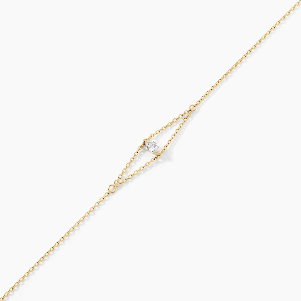 Bracelet Or Jaune 375/1000 Jamsheed Solitaire Navette Oxyde Double Chaine Maille Forcat 16+2Cm BNH0015K-G-CZ-S1