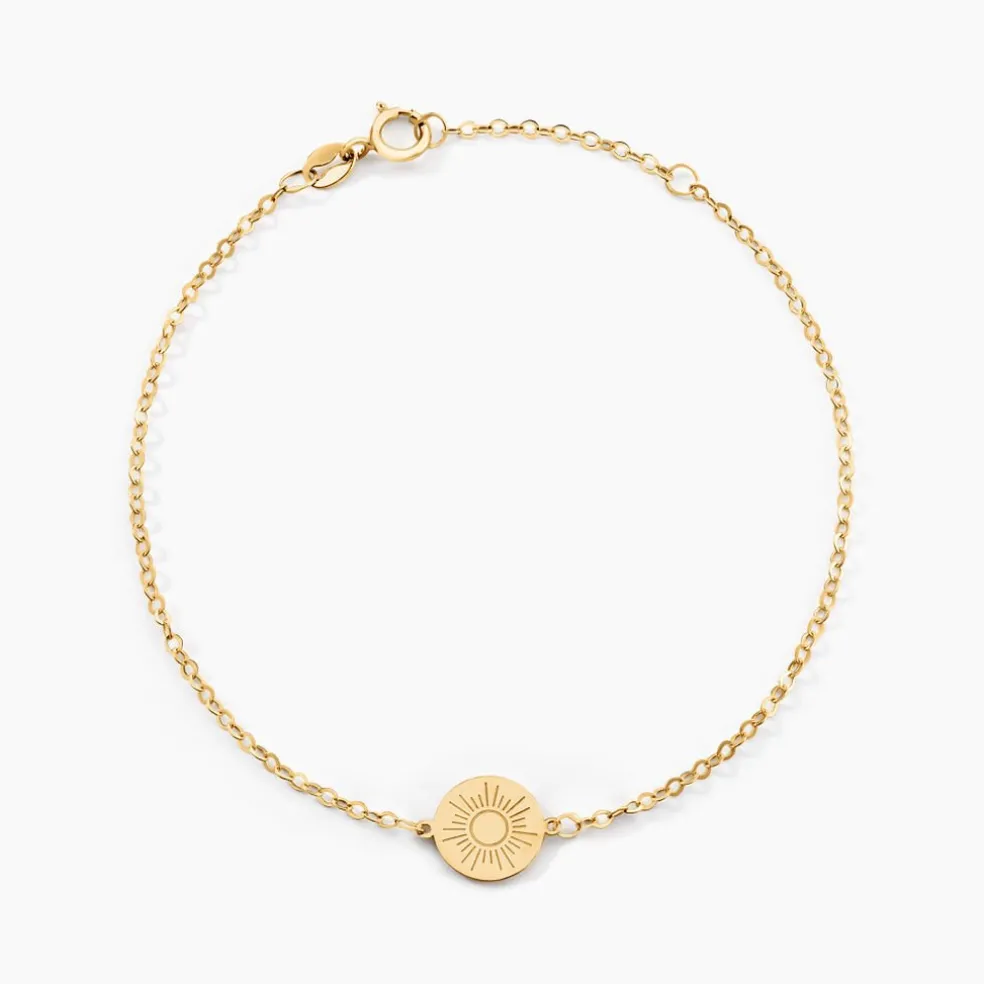 Bracelet Or Jaune 375/1000 Pastille Soleil 8mm Maille Forcat 16+2cm
