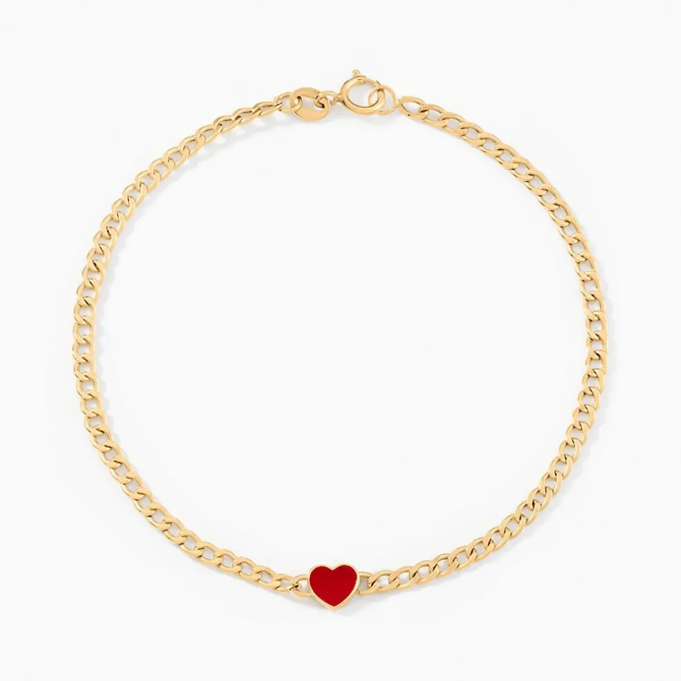 Bracelet Or Jaune 375/1000 C艙ur Email Rouge Maille Gourmette 18cm