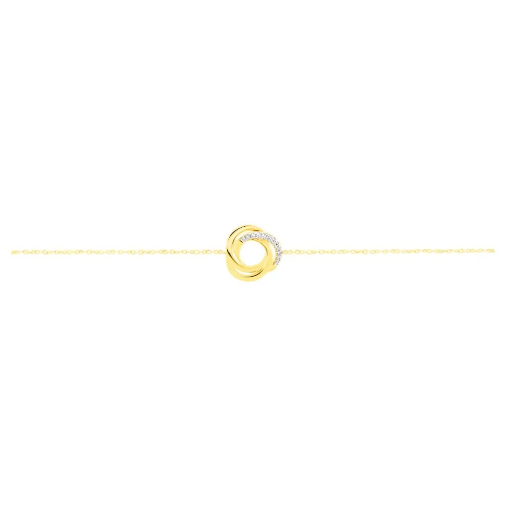 Bracelet Or Jaune 375/1000 Forme Nid Pavage Diamants 18.5cm