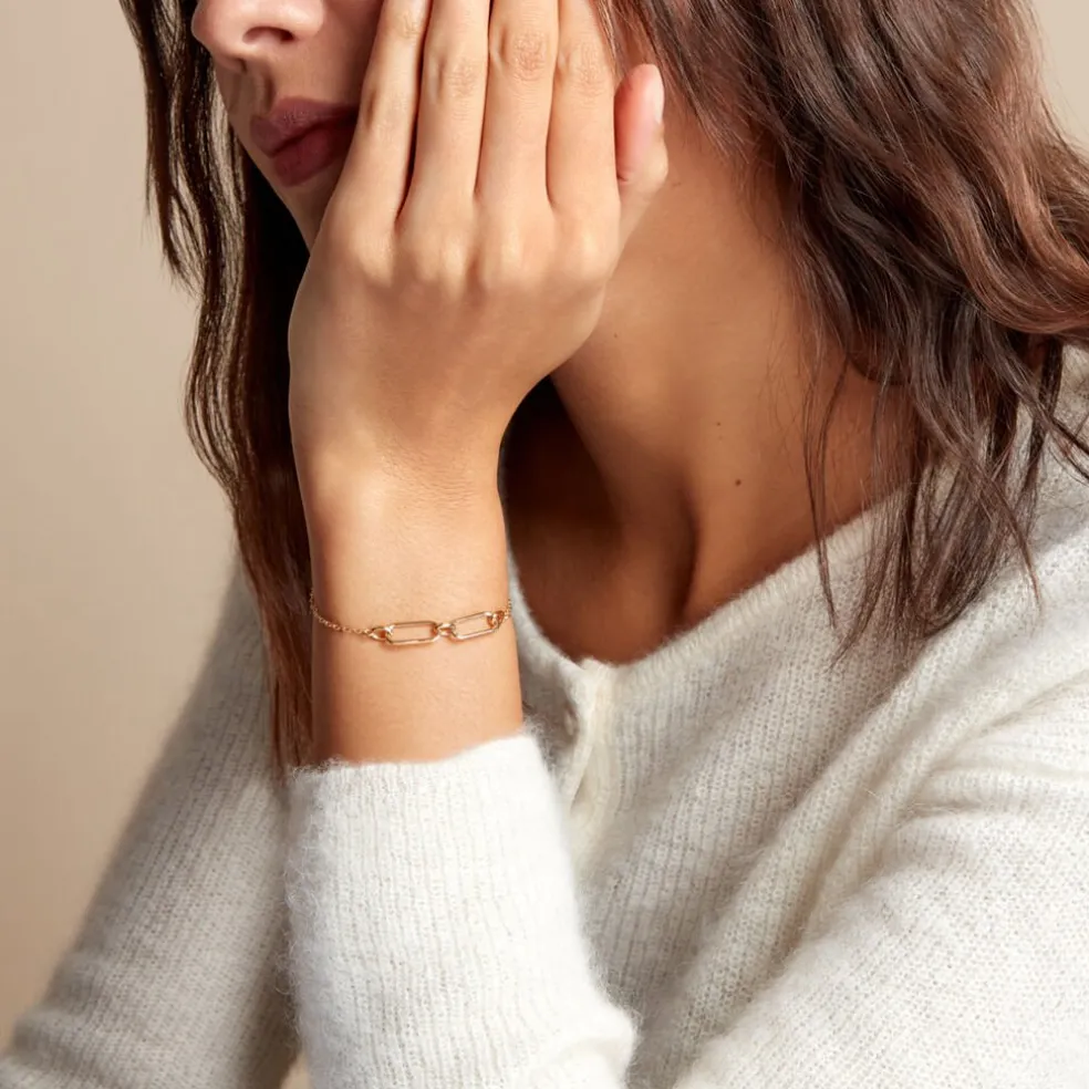 Bracelet Or Bicolore Jaune Et Blanc 375/1000 Fleur Saphir Navette 0.106cts Serti Griffes Et Diamants 0.01cts Serti Illusion Maille Forçat Ronde 16+2cm