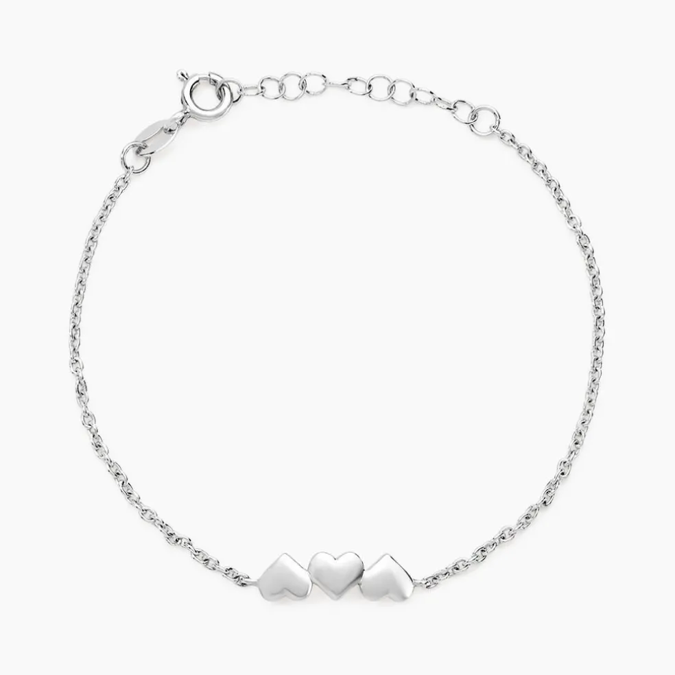 Bracelet Argent Blanc 925/1000 Triple C艙ur Maille Forçat 16+3cm