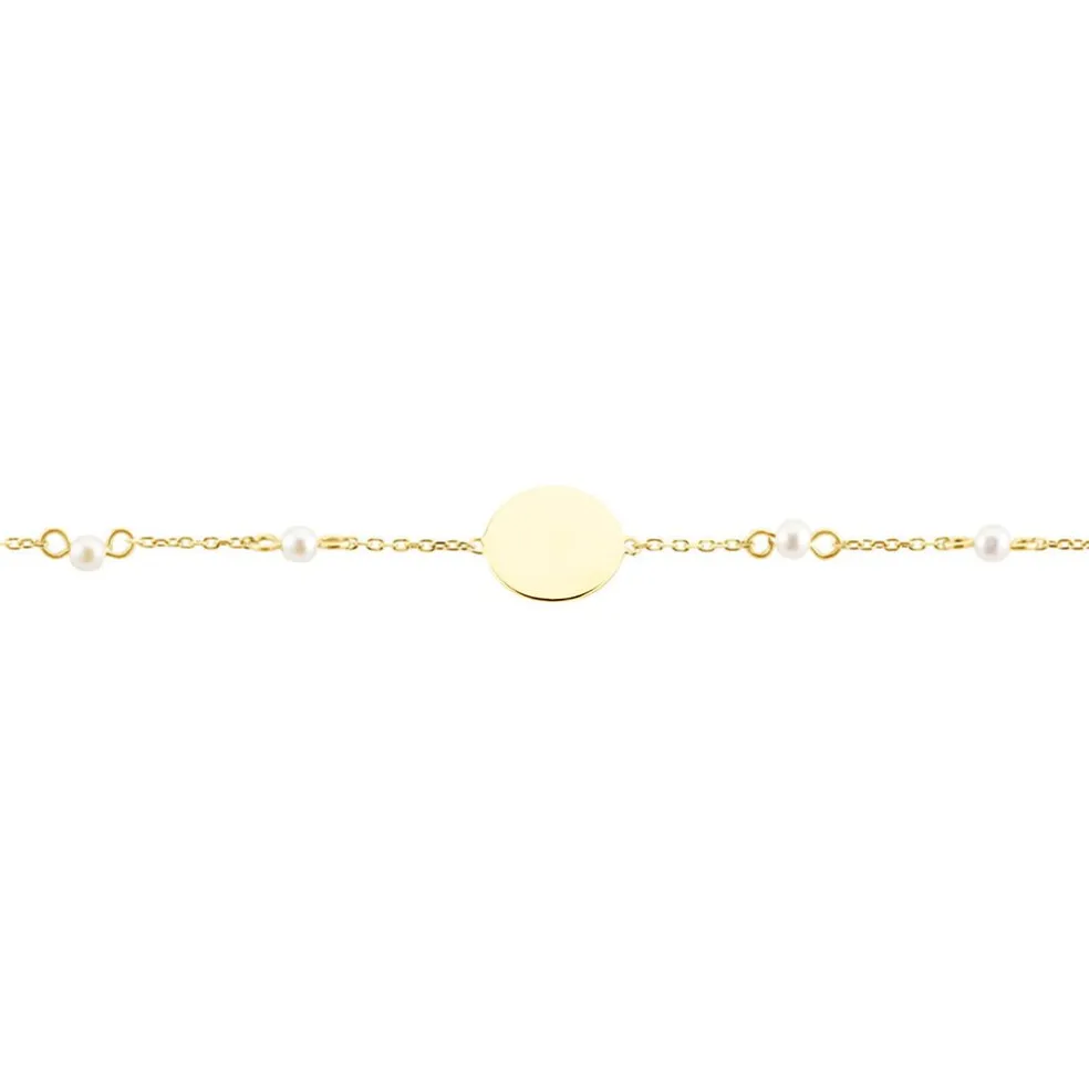 Bracelet Or Jaune 375/1000 6 Perles De Culture Rondes Blanches 2mm Collees Maille Forcat 16+2cm