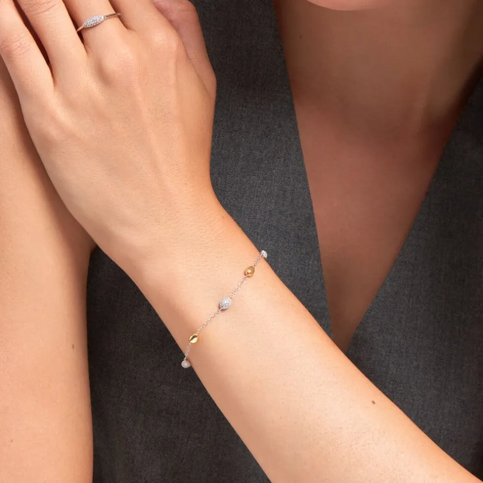 Bracelet Argent Blanc 925/1000 Boules Alterneés Oxydes De Zirconium Et Argent Jaune Maille Forçat 16+3cm