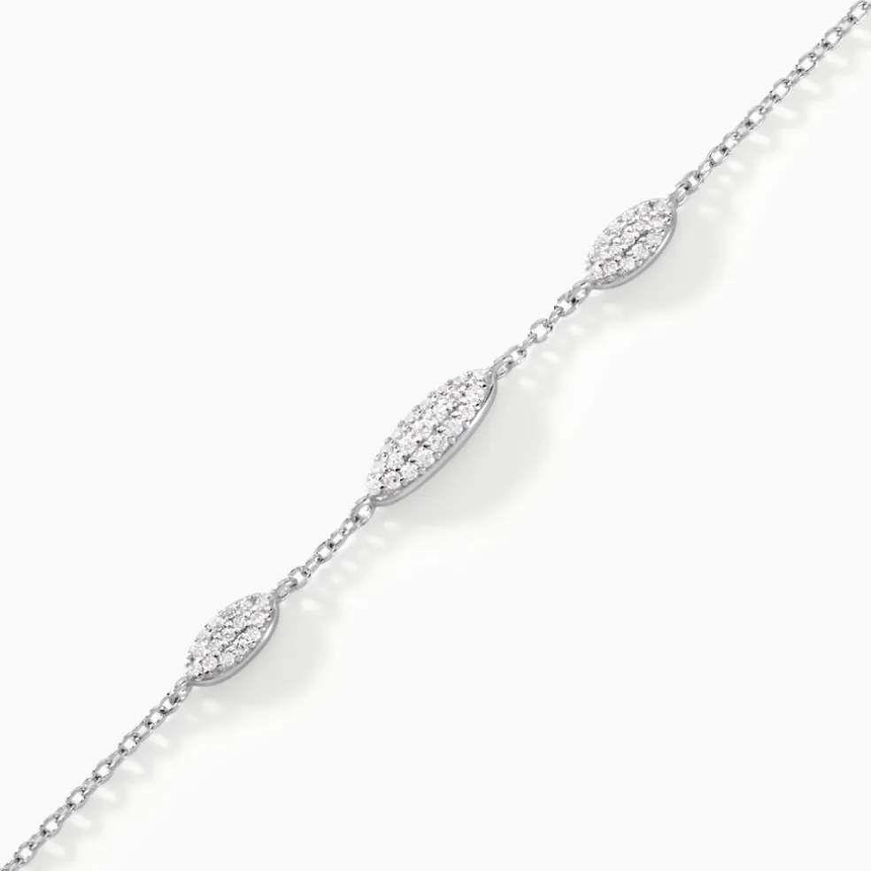 Bracelet Argent Blanc 925/1000 Formes Amandes Oxydes De Zirconium Maille Forçat 16+3cm
