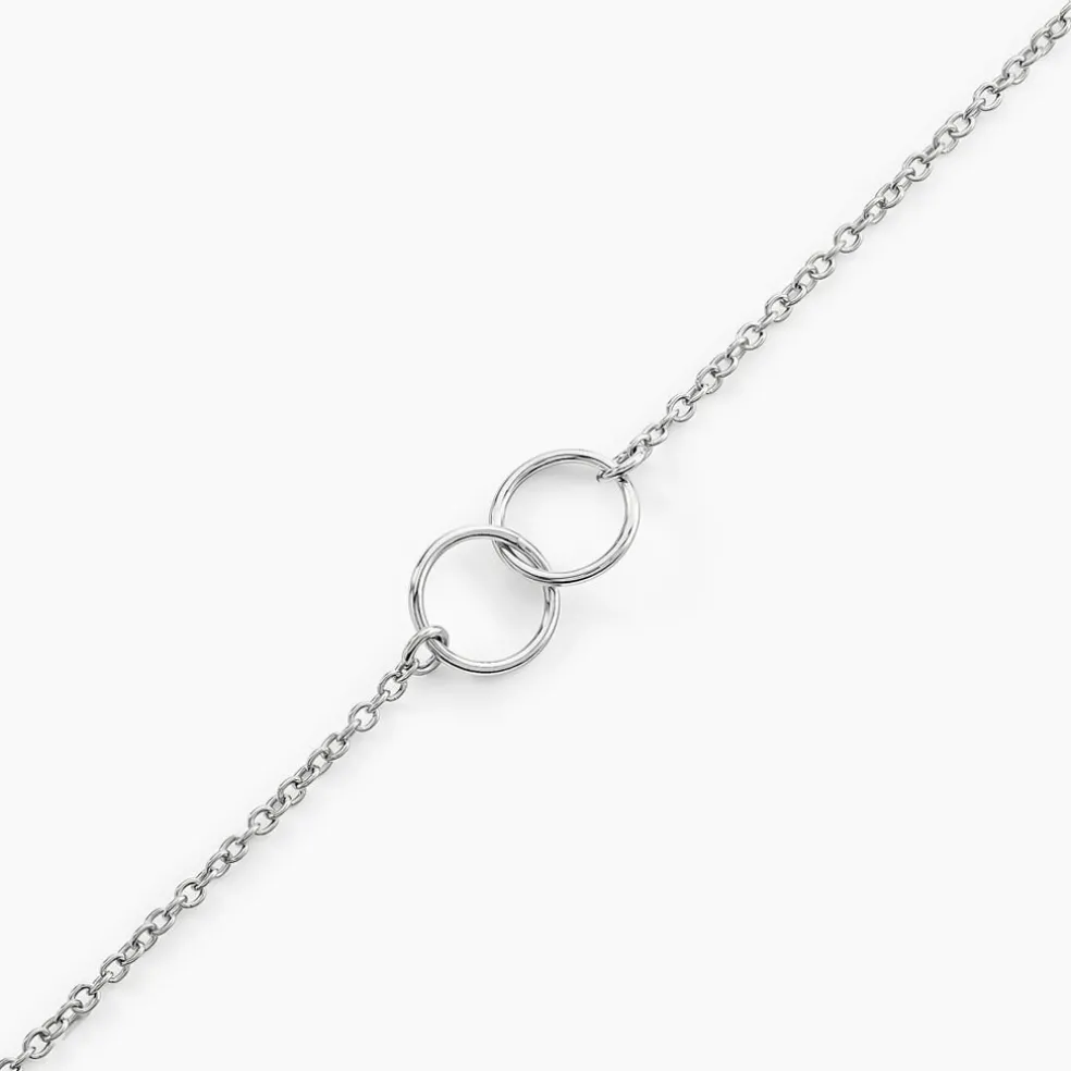 Bracelet Argent Blanc 925/1000 Double Cercles Ajoures Maille Forcat 18.5cm