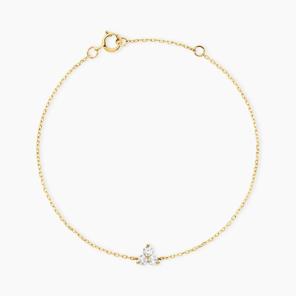 Bracelet Or Jaune 375/1000 Trilogie Diamant Synthetique 0,192Cts Serti Griffes Maille Forcat 16+2Cm