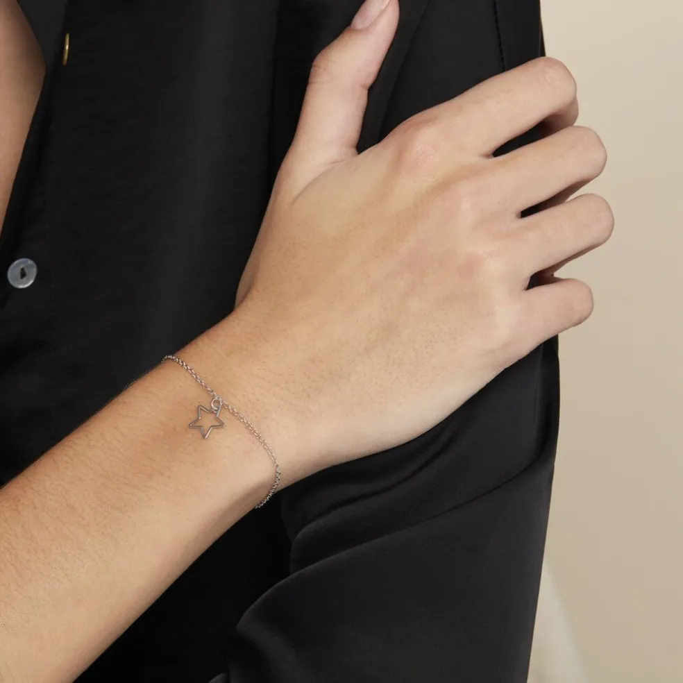 Bracelet Argent Blanc 925/1000 Etoile Maille Forcat 16cm
