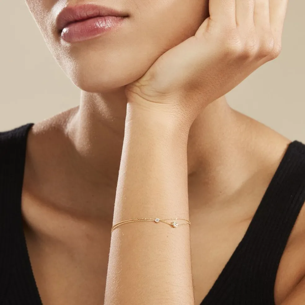 Bracelet Or Jaune 375/1000 Double Chaine Oxydes De Zirconium Clos 18cm