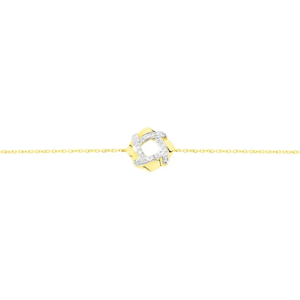 Bracelet Or Jaune 375/1000 Motif Cercle Ajoure Pavage Diamant 18.5cm