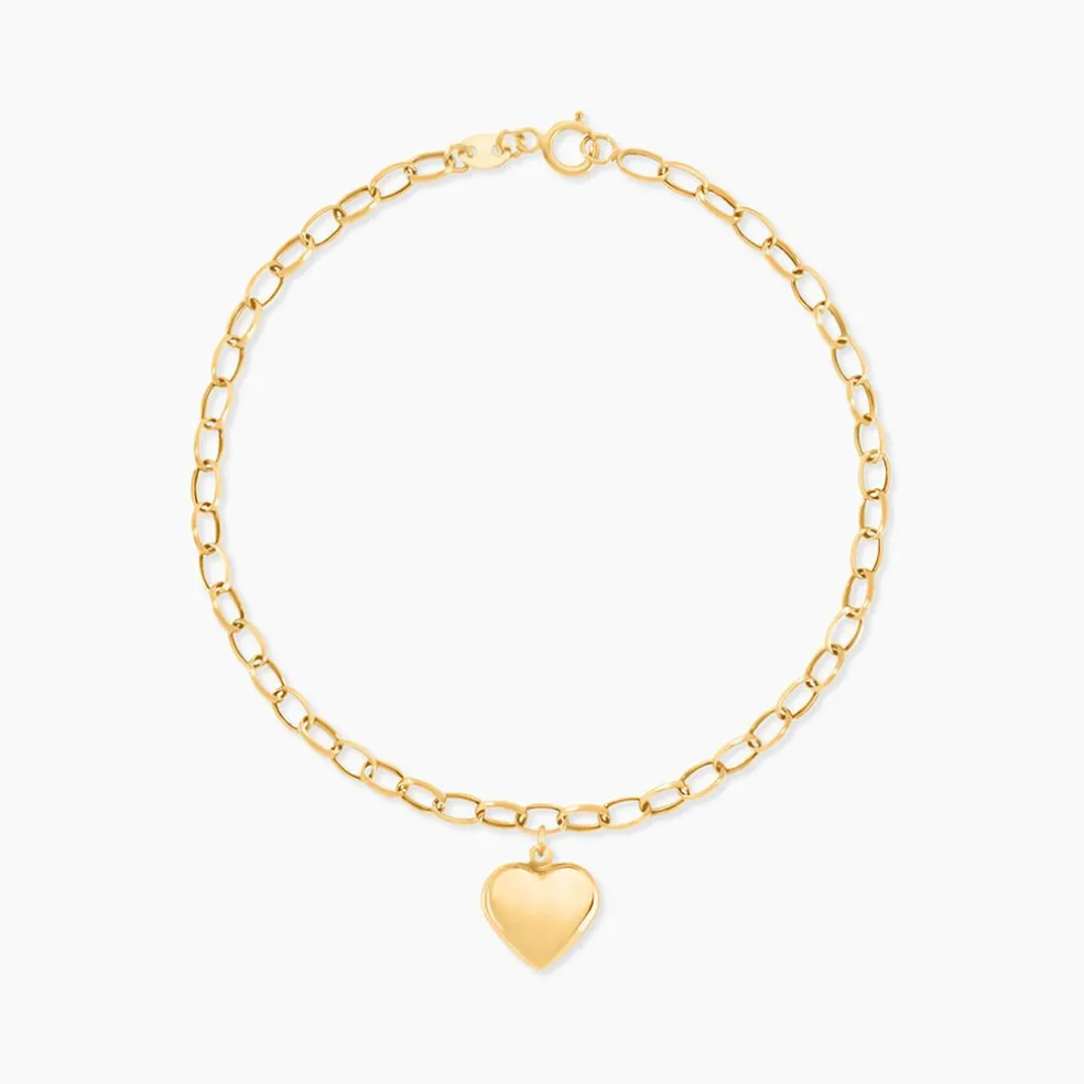 Bracelet Or Jaune 375/1000 C艙ur Maille Jaseron Largeur 2,9Mm Longueur 18,5Cm Ajustable